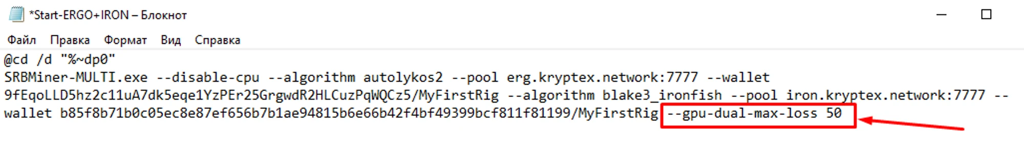 Настройка --gpu-dual-max-loss в SRBMiner