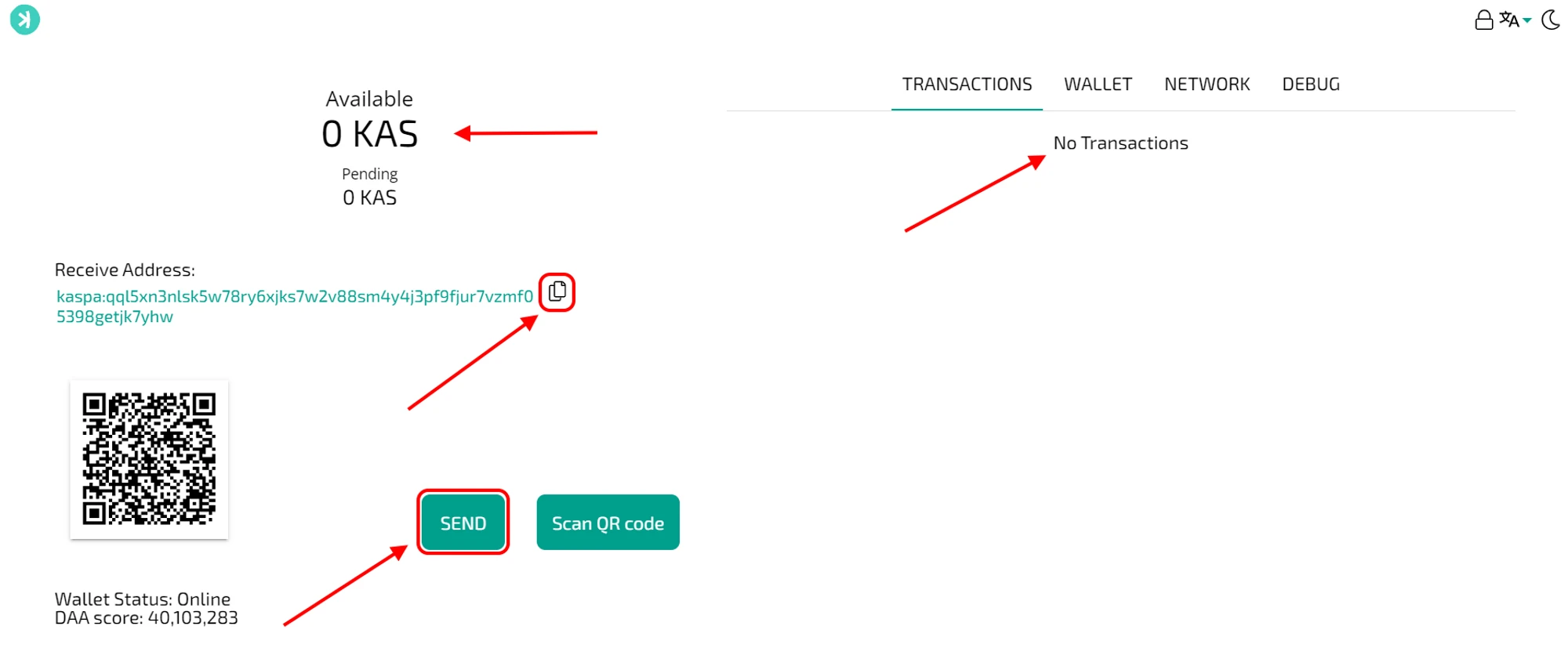 У полі Address отримуємо нашу адресу гаманця KASPA.